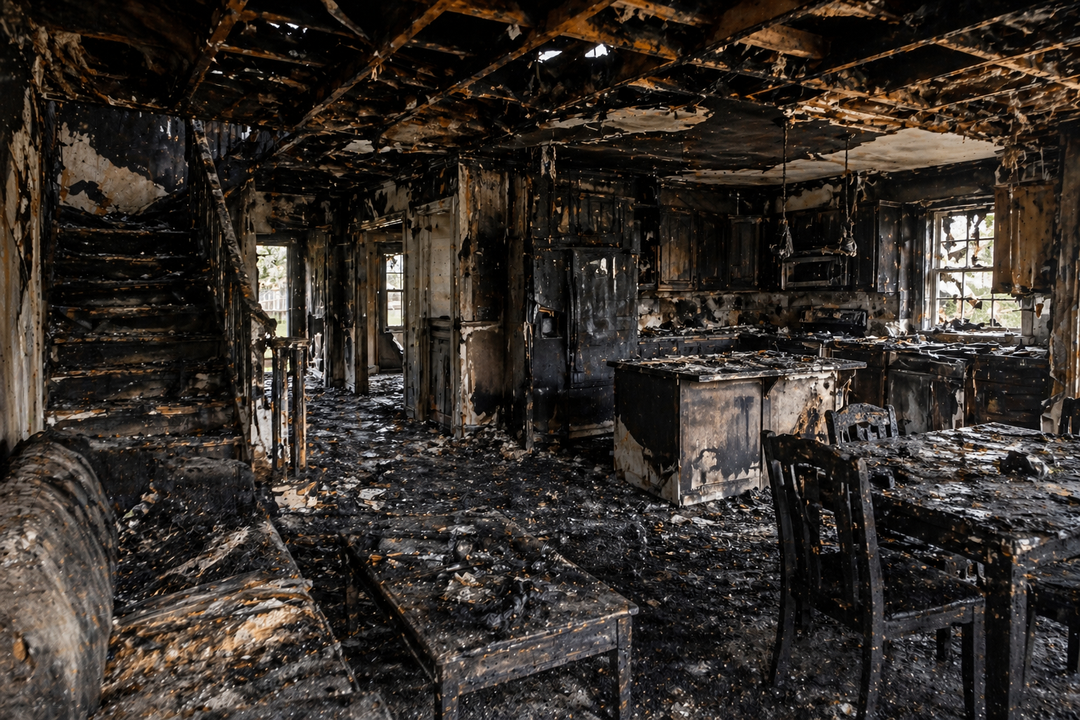 Comprehensive structural and content restoration following residential or commercial fires. We assess the full extent of fire damage, safely remove charred materials, treat affected surfaces, and rebuild your property to pre-loss condition.